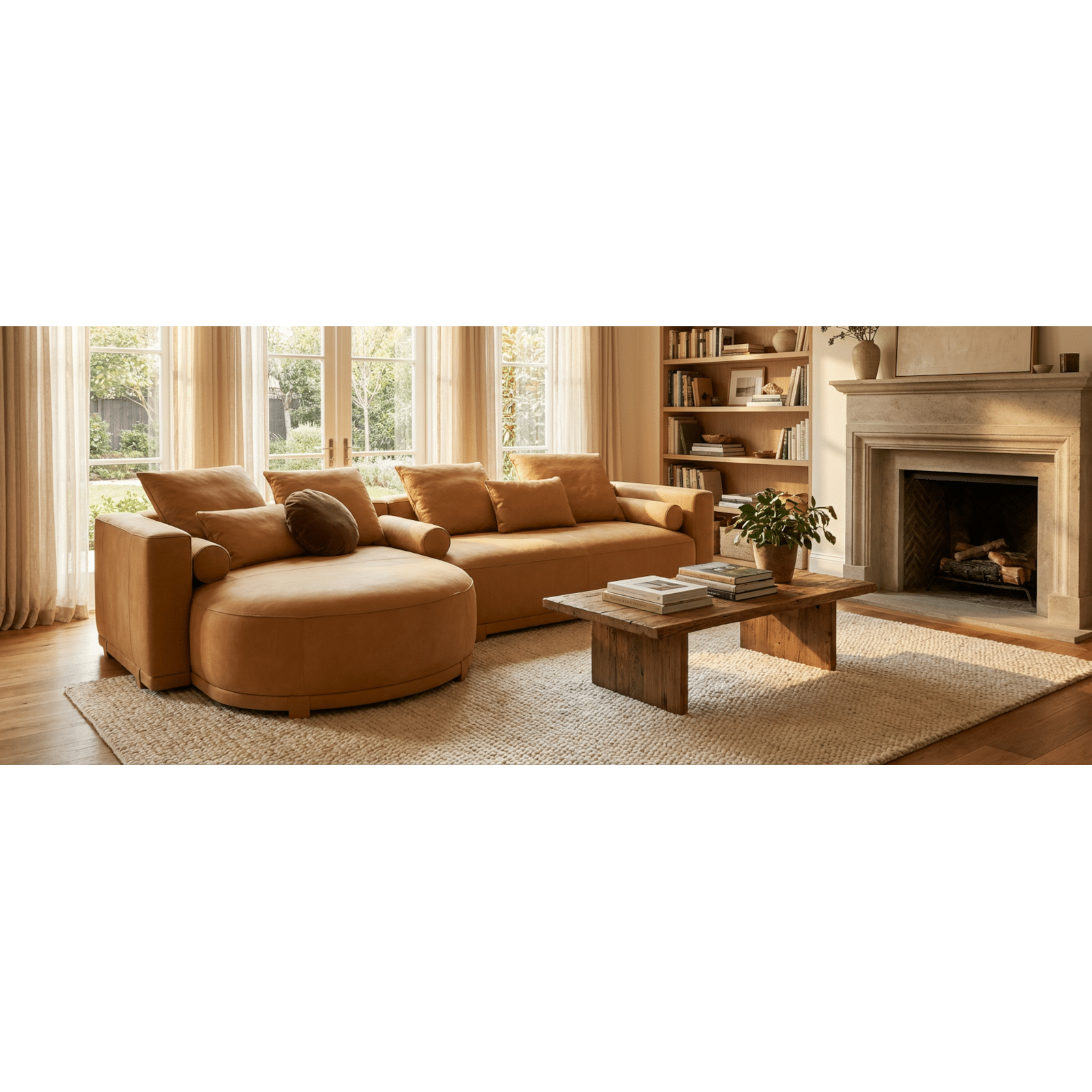 Upholstered with Leather Polish col. Cookie Piping: Leather Polish col. Biscuit Dimension: L 340 x T 110/160 x H 64cm